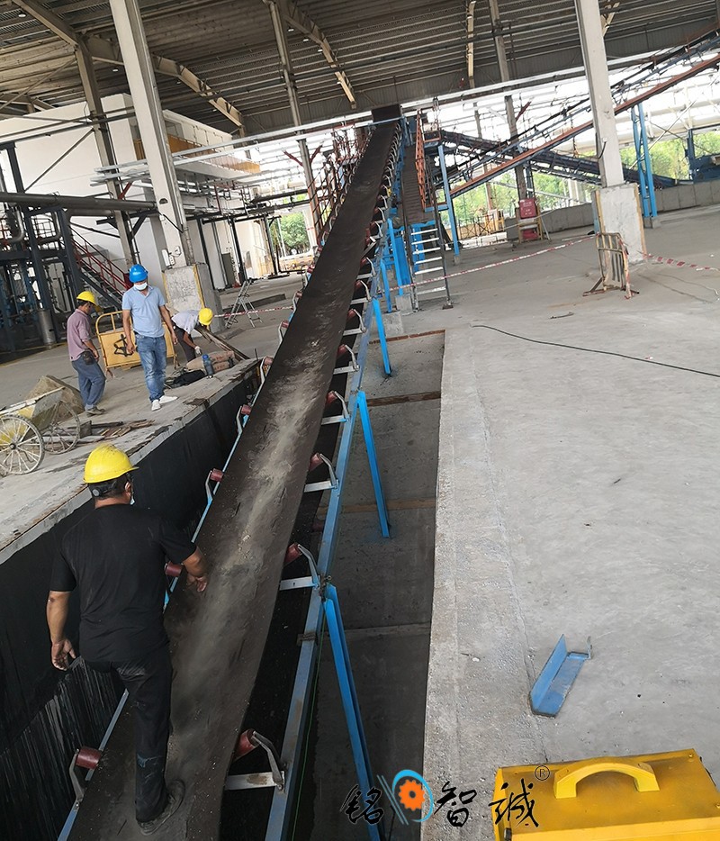 旋轉(zhuǎn)式皮帶輸送機(jī)其結(jié)構(gòu)是在平形橡膠運(yùn)輸帶兩側(cè)粘上可自由伸縮的橡膠波形立式"裙邊”, 在裙邊之間又粘有一定強(qiáng)度和彈性的橫隔板組成匣形斗,使物料在斗中進(jìn)行連續(xù)輸送。擋邊帶式輸送機(jī)可廣泛用于煤炭、糧食、建材、化工、水電和冶金等部門,在環(huán)境溫度為- 19°C ~ +40°C范圍內(nèi),輸送堆積比重為0.5-2.5t/m3的各種散狀物料。對于輸送有特殊要求的物料,如高溫、具有酸、堿性、油類物質(zhì)或有機(jī)溶劑等成分的物料,需采用特殊的擋邊輸送帶。